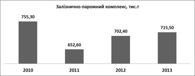 Рис. 2.7 Динаміка вантажопотоку металовантажів 2010-2013 рр.