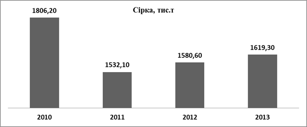 Рис. 2.9 Динаміка вантажообігу сірки 2010-2013 рр.