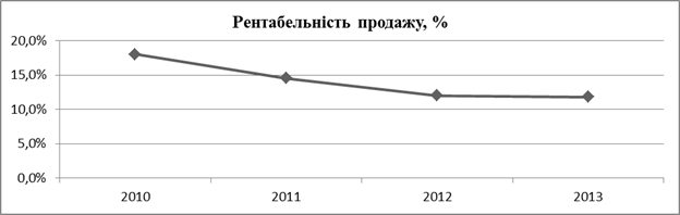 Рис. 2.17 Динаміка рентабельності продаж 2010-2013 рр.