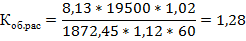 Коэффициент рассчитывается для каждой операции. Поэтому получаем следующие значения, которые в дальнейшем округляются до целого (Коб.пр):
