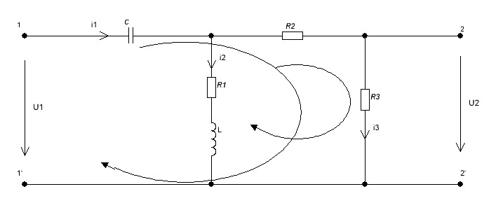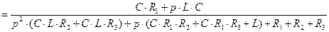Для того, что бы показать расчет переходной характеристики в случае, если корни характеристического уравнения будут комплексно – сопряженные, возьмем другую схему четырехполюсника с другими параметрами заданной цепи.