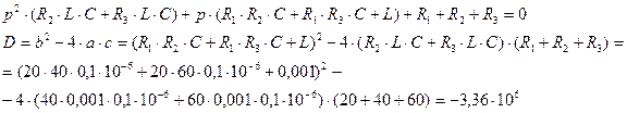 Подставив числовые значения параметров цепи в характеристическое уравнение (2.68), вычислим его корни:
