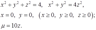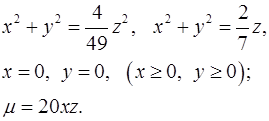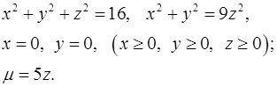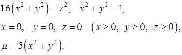 Задача 16. Тело V задано ограничивающими его поверхностями, m - плотность. Найти массу тела. 16.1. 16.2. 16.3. 16.4. 16.5. 16.6. 16.7. 16.8. 16.9. 16.10. 16.11. 16.12. 16.13. 16.14. 16.15. 16.16. 16.17. 16.18. 16.19. 16.20. 16.21. 16.22. 16.23. 16.24. 16.25. 16.26. 16.27. 16.28. 16.29. 16.30. 16.31.