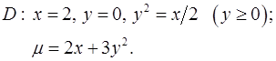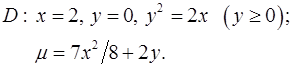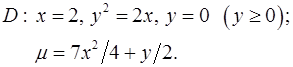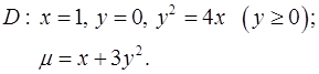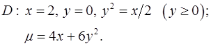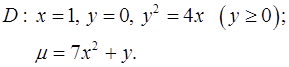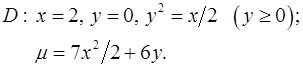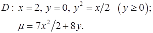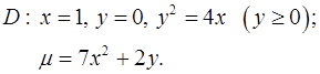 Задача 9. Пластинка D задана неравенствами, m - поверхностная плотность. Найти массу пластинки. 9.1. 9.3. 9.5. 9.7. 9.9. 9.11. 9.13. 9.15. 9.17. 9.19. 9.21. 9.23. 9.25. 9.27. 9.29. 9.31.