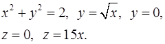Задача 14. Найти объем тела, заданного ограничивающими его поверхностями. 14.1. 14.3. 14.5. 14.7. 14.9. 14.11. 14.13. 14.15. 14.17. 14.19. 14.21. 14.23. 14.25. 14.27. 14.29. 14.31. Задача 15. Найти объем тела, заданного неравенствами. 15.1. 15.3. 15.5. 15.7. 15.9. 15.11. 15.13. 15.15. 15.17. 15.19. 15.21. 15.23. 15.25. 15.27. 15.29. 15.31.