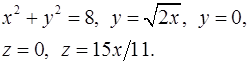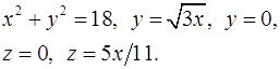 Задача 11. Найти объем тела, заданного ограничивающими его поверхностями. 11.1. 11.3. 11.5. 11.7. 11.9. 11.11. 11.13. 11.15. 11.17. 11.19. 11.21. 11.23. 11.25. 11.27. 11.29. 11.31.