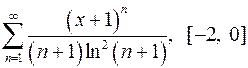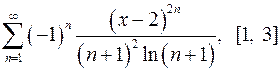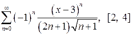 Задача 11. Найти область сходимости функционального ряда. 11.1. 11.3. 11.5. 11.7. 11.9. 11.11. 11.13. 11.15. 11.17. 11.19. 11.21. 11.23. 11.25. 11.27. 11.29. 11.31. Задача 12. Найти область сходимости функционального ряда. 12.1. 12.3. 12.5. 12.7. 12.9. 12.11. 12.13. 12.15. 12.17. 12.19. 12.21. 12.23. 12.25. 12.27. 12.29. 12.31. Задача 13. Найти область сходимости функционального ряда. 13.1. 13.3. 13.5. 13.7. 13.9. 13.11. 13.13. 13.15. 13.17. 13.19. 13.21. 13.23. 13.25. 13.27. 13.29. 13.31. Задача 14. Найти область сходимости функционального ряда. 14.1. 14.3. 14.5. 14.7. 14.9. 14.11. 14.13. 14.15. 14.17. 14.19. 14.21. 14.23. 14.25. 14.27. 14.29. 14.31. Задача 15. Доказать, исходя из определения, равномерную сходимость функционального ряда на отрезке 15.1. 15.3. 15.5. 15.7. 15.9. 15.11. 15.13. 15.15. 15.17. 15.19. 15.21. 15.23. 15.25. 15.27. 15.29. 15.31. Задача 16. Для данного функционального ряда построить мажорирующий ряд и доказать равномерную сходимость на указанном отрезке. 16.1. 16.3. 16.5. 16.7. 16.9. 16.11. 16.13. 16.15. 16.17. 16.19. 16.21. 16.23. 16.25. 16.27. 16.29. 16.31. Задача 17. Найти сумму ряда. 17.1. 17.3. 17.5. 17.7. 17.9. 17.11. 17.13. 17.15. 17.17. 17.19. 17.21. 17.23. 17.25. 17.27. 17.29. 17.31. Задача 18. Найти сумму ряда. 18.1. 18.3. 18.5. 18.7. 18.9. 18.11. 18.13. 18.15. 18.17. 18.19. 19.21. 18.23. 18.25. 18.27. 18.29. 18.31. Задача 19. Разложить функцию в ряд Тейлора по степеням 19.1. 19.3. 19.5. 19.7. 19.9. 19.11. 19.13. 19.15. 19.17. 19.19. 19.21. 19.23. 19.25. 19.27. 19.29. 19.31. Задача 20. Вычислить интеграл с точностью до 0, 001. 20.1. 20.3. 20.5. 20.7. 20.9. 20.11. 20.13. 20.15. 20.17. 20.19. 20.21. 20.23. 20.25. 20.27. 20.29. 20.31.