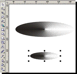 | | Делаем копию верхнего эллипса, чуть уменьшаем размер, заливаем линейным градиентом