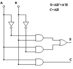 Рассматривая таблицу истинности полусумматора (табл. 12) можно заметить, что выход S полусумматора выполняет функции элемента «ИСКЛЮЧАЮЩЕЕ ИЛИ», а выход переноса С полусумматора – элемента «И». Таким образом, логические выражения для функций S и C равны: S=AB ′ +A ′ B, C=AB. Т а б л и ц а 12