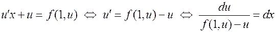 уравнение с разделяющимися переменными относительно новой искомой функции