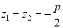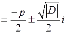 К этим значениям можно придти, используя формально выражение для корней, полученное в случае положительного дискриминанта, и помня, что