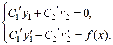Решая эту систему, получим выражения для В качестве итога сформулируем алгоритм решения неоднородного уравнения методом вариации произвольных постоянных: 1. Решение соответствующего однородного уравнения, получение функций 2. Запись общего решения соответствующего однородного уравнения в виде 3. Вычисление производных 4. Запись системы (25) для отыскания 5. Решение системы, получение функций 6. Нахождение каких-либо первообразных тегрированием функций 7. Запись частного решения неоднородного уравнения в виде