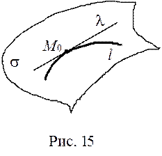 Определение. Прямая , проходящая через точку поверхности перпендикулярно касательной плоскости , называется нормалью к поверхности в точке (рис. 17).