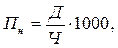 де Д – сума днів непрацездатності по всіх нещасних випадках; N – загальна кількість нещасних випадків. Показник непрацездатності (Пн) визначається за формулою: