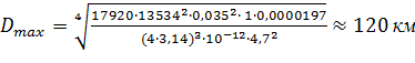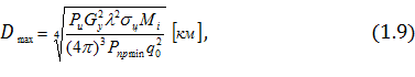 1.9 Максимальна дальність РЛС у вільному просторі Для РЛС з імпульсними сигналами, зі сполученими передавальною і приймаючою антенами, з когерентним накопичуванням сигналів, дальність виявлення буде визначатися за формулою: