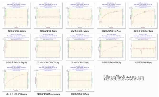 Рис 2.2 температур элементов При тесте POWER SUPPLY также можно использовать 64-битный режим. При запуске дается максимальная нагрузка на блок питания использованием как CPU с полным разогревом, так и GPU: 3D. Для выявления проблем блока питания этот тест является основным. Результаты тестирования сохраняются в виде графиков зависимостей в папке Мои документы\ООСТ\дата тестирования.