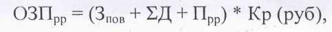 где Кр – районный коэффициент. Принимаем районный коэффициент 0, 7 и северная надбавка 0, 5 и в сумме1, 2. Для зон ТО-1, ТО-2, вместо Зпов берут Зсд. ОЗПрр = (124104, 0+24820, 8+49641, 6)*2, 2 =436846, 1 руб. Дополнительная заработная плата ремонтных рабочих Процент дополни тельной заработной платы