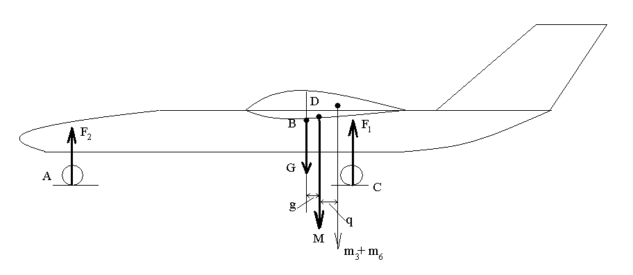 Если после наполнения баков, поставит самолет на весы, то можем заметить смешение центра масс самолета от прежней точки сосредотачивания массовых сил (из точки «В» в точку «D»).