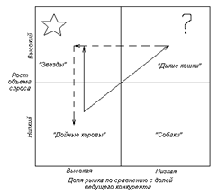 · «звезды» укреплять и оберегать; · по возможности избавляться от «собак», если нет веских причин, чтобы их сохранить; · для «дойных коров» необходим жесткий контроль капиталовложений и передача избытка денежной выручки под контроль высшего руководства фирмы; · «дикие кошки» подлежат специальному изучению, чтобы установить, не смогут ли они при известных капиталовложениях превратиться в звезды. «Дикие кошки» при определенных обстоятельствах могут стать «звездами», а «звезды», в дальнейшем, превратятся в «собак».
