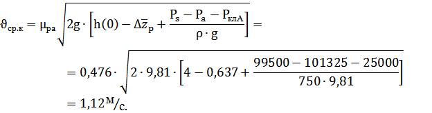 Средняя скорость нефтепродукта в приемном трубопроводе