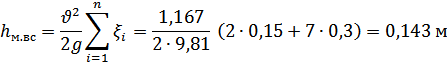 2.2. Гидравлический расчет всасывающей линии трубопровода В данном случае гидравлический расчет будем вести при средне -минимальной температуре нефтепродукта. Кинематическая вязкость Длина всасывающей линии L = 56, 6 м; Наружный диаметр всасывающего трубопровода Dвс =0, 063 м; Толщина стенки трубопровода Геодезическая отметка резервуара z рез = 255, 4 м; Геодезическая отметка ТРК Эквивалентная шероховатость труб Производительность насоса Q=0, 0033 Таблица 3 - Местные сопротивления на всасывающей линии