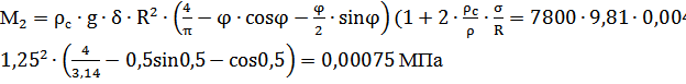 φ - коэффициент, зависящий от условия закрепления днища резервуара по контуру (φ =0, 5-0, 75). Изгибающий момент возникающий от собственного веса оболочки (на единицу длины оболочки)
