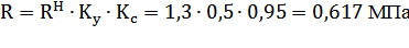 где RH — нормативное длительное сопротивление разрушению материала труб из условия работы на внутреннее давление, RH =1, 3МПа; KY—коэффициент условий работы трубопровода, KY =0, 5; Кс — коэффициент прочности соединения труб, Кс =0, 95[13]. Модуль ползучести материала труб Е, принимается с учетом его изменения при длительном действии нагрузки и температуры на трубопровод по формуле