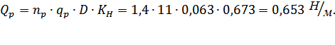 где nтр — коэффициент перегрузки от транспортных нагрузок, hтр =1, 4; qНТР—нормативное равномерно распределенное давление от транспорта, qНТР =10Н/м2; D—наружный диаметр трубопровода, м.