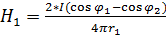 Так как ток по другой дальней стороне рамки от магнитометра течет в противоположном направлении, то поле будет равно разности от двух противоположных токов Н1-Н2 Поле от дальнего тока: