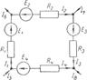 A) E1– E4+E3– E2=I1R1– I4R4– I3R3+I2R2 $$$ 99 Кү рделі тізбектің қ ұ рамына кіретін контур ү шін Кирхгофтың екінші заң ы бойынша тең деу қ ұ рың ыз.