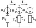 C) I1+I2-I3=0 -E1+E2 = I1R1-I2R2 -E2+E3 = I2R2+I3R3