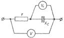 B) 8 А. $$$ 205 Суретте кө рсетілген тізбектің параметрлері: E=200В; r1=8, 66О м; xL1=5 О м; r2=10 О м; xL2=17, 32 О м; r3=1, 34 О м; xc=7, 32 О м. Электродинамикалық вольтметрдің кө рсетуі неге тең?