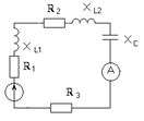 B) 40 В. $$$ 204 Cуретте кө рсетілген тізбектің параметрлері: E=200В; r1=8, 66О м; xL1=5О м; r2=10О м; xL2=17, 32О м; r3=1, 34О м; xc=7, 32О м. Электромагниттік амперметрдің кө рсетуі неге тең?