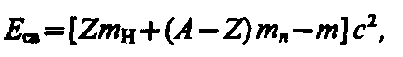 где тp, тn, т я — соответственно массы протона, нейтрона и ядра. В таблицах обычно приводятся не массы т я ядер, а массы т атомов. Поэтому для энергии связи ядра пользуются формулой