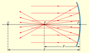 Вследствие закона отражения света мнимое изображение предмета располагается симметрично относительно зеркальной поверхности. Размер изображения равен размеру самого предмета. Сферическим зеркалом называют зеркально отражающую поверхность, имеющую форму сферического сегмента. Центр сферы, из которой вырезан сегмент, называют оптическим центром зеркала. Вершину сферического сегмента называют полюсом. Прямая, проходящая через оптический центр и полюс зеркала, называется главной оптической осью сферического зеркала. Сферические зеркала бывают вогнутыми и выпуклыми. Литература 1. Детлаф А.А., Яворский Б.М, Курс физики: Уч. пос. для втузов. Изд. 4-е, испр. - 607 с. М: Высшая Школа, 1989г. 2. Трофимова Т.И. Краткий курс физики: Уч. пос. для вузов. Изд. 2-е, испр. – 352 с, М: Высшая Школа, 2002 г. 3. Савельев И.В. Курс общей физики. Механика. Молекулярная физика. 350с, т. М.Наука. 1989. 4. Трофимова Т.И. Курс физики: Учебное пособие для инженерно-технических специальностей ВУЗов, Изд. 6-е/ 7-е - 542 с. М: Высшая Школа, 1999 г. Лекция №11 (тезисы)