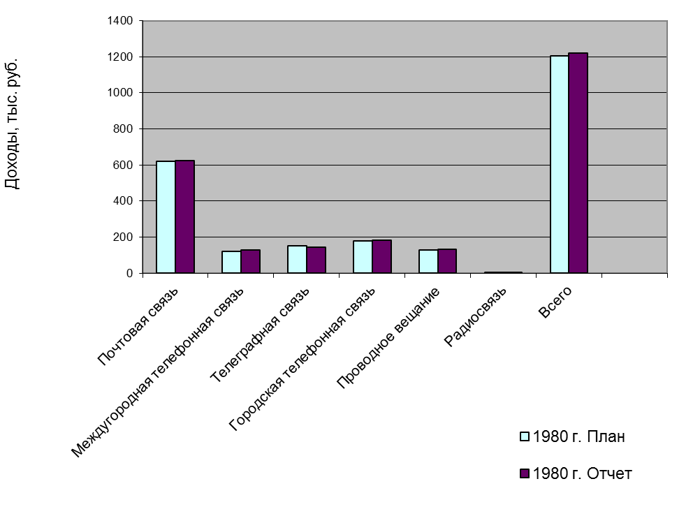 Рисунок 1 - Выполнение плана доходов от основной деятельности организации связи в отчетном году