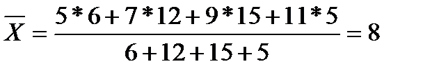 Средний стаж работы сотрудников Х, лет, определяется как средняя арифметическая взвешенная по формуле (1):