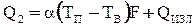 где a - коэффициент теплоотдачи; ТП – температура наружной поверхности трубы; ТВ – температура воздуха; F – площадь боковой поверхности цилиндрической трубы; Qизл – лучистый тепловой поток, равный