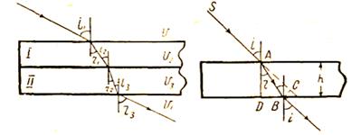 Сө йтіп, жарық сә улесі жазық -параллель пластинкалардан ө ткенде оның бағ ыты ө згермейді, тек аздап ығ ысады. Жарық бір жазық -параллель пластинкадан 2, б-сурет ө ткен жағ дайда сә уленің ығ ысу шамасы ВС кесіндісіне тең, яғ ни: