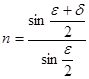 Енді 1 мен 1 орындарына олардың (4) жә не (5) тең діктердегі мә ндерін қ ойып, сонда призма затының сыну кө рсеткіші былай ө рнектелуге болады: