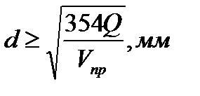 Внутренний диаметр осушительной магистрали в соответствии с п.7.2.1 [1] определяется по формуле