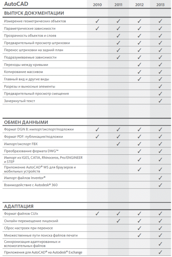 Таблица 4 - Сравнительная характеристика последних версий AutoCAD.