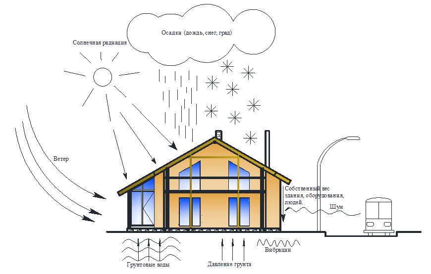 Любое здание должно отвечать следующим основным требованиям: · Функциональная целесообразность – здание должно полностью отвечать тому процессу, для которого оно предназначено (удобство проживания, труда, отдыха и т.д.). · Техническая целесообразность – здание должно надежно защищать людей от внешних воздействий (низких или высоких температур, осадков, ветра), быть прочным и устойчивым (выдерживать различные нагрузки), быть долговечным, сохраняя нормальные эксплуатационные качества во времени. · Архитектурно-художественная выразительность – здание должно быть привлекательным по своему экстерьеру и интерьеру, благоприятно воздействовать на психологическое состояние и сознание людей. · Экономическая целесообразность, предусматривающая наиболее оптимальные для данного вида здания затраты труда, средств и времени на его возведение. При этом наряду с единовременными затратами на строительство необходимо также учитывать расходы, связанные с эксплуатацией здания. Все эти требования необходимо рассматривать в совокупности. При проектировании здания принимаемые решения должны являться результатом оптимизации и согласованности выполнения всех требований, обеспечивающих его обоснованность. Технологическая целесообразность – самая важная функция здания, определяющаяся решением его конструкций, которое должно учитывать все внешние воздействия, воспринимаемые зданием в целом и его отдельными элементами. Эти воздействия делят на силовые и несиловые (рис. 1).