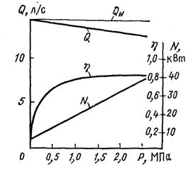 При полной (расчётной) нагрузке величина Х а р а к т е р и с т и к а н а с о с а. При построении графической характеристики любого объёмного насоса за аргумент принимают не подачу, как в случае динамических насосов, а давление насоса (рис. 7.3).