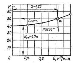 Рис. 7.6. Характеристика трубопроводной сети (к примеру 7.1) Решение. Подача одного цилиндра Q’ = 0, 5 Q = 0, 63 м3/мин. Уравнение подачи