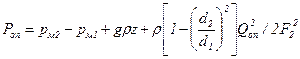 где pм1, pм2 - показания приборов, измеряющих давление на выходе и входе (при разрежении на входе pм1 отрицательно); z – расстояние по вертикали между приборами; Q оп - опытная подача; d2 , d1 – диаметры отводящего и подводящего трубопроводов;