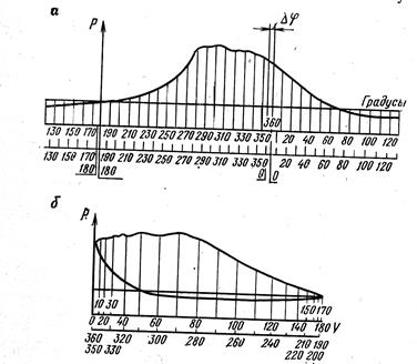 Рис. 18.8. Индикаторная диаграмма: а – по углу поворота вала; б – в координатах V, p