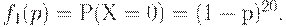 Оперативные характеристики для конкретных планов статистического контроля не всегда имеют такой простой вид, как в случае формул (4) и (5). Рассмотрим в качестве примера план (20, 0, 2) + (40, 0). Сначала найдем вероятность того, что партия будет принята по результатам контроля первой партии. Согласно формуле (4) имеем: