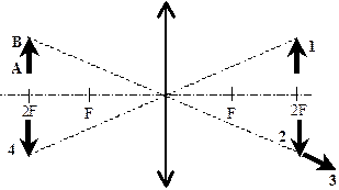 На рисунке показан ход лучей от точечного источника света А через тонкую линзу. Какова оптическая сила линзы? Ответ округлите до десятых.