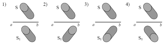 Источник света неправильной формы S отражается в плоском зеркале ab. На каком рисунке верно показано изображение S1 этого источника в зеркале?